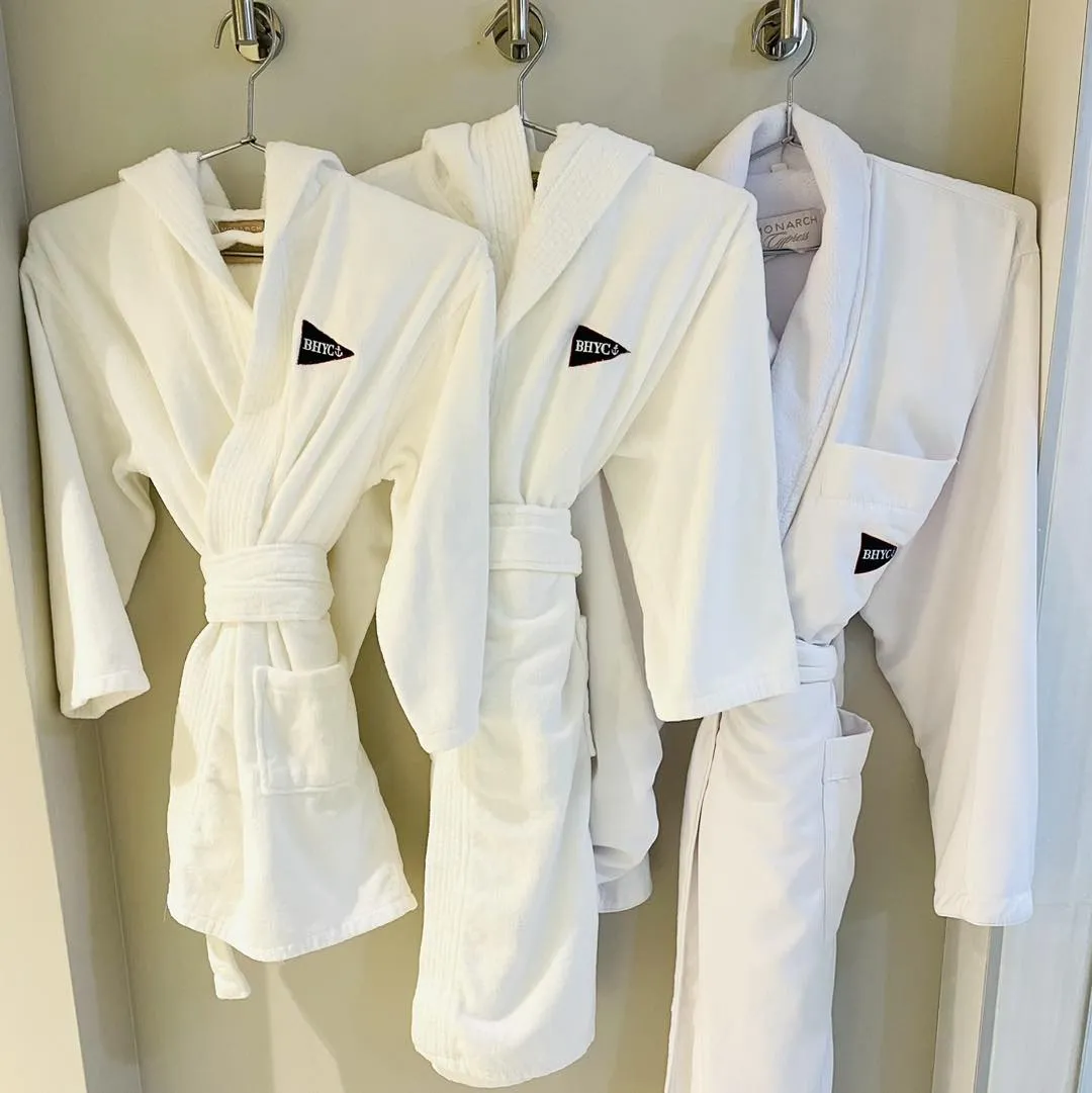 Luscious Monarch Cypress robe with BHYC embroidered on front chest.
